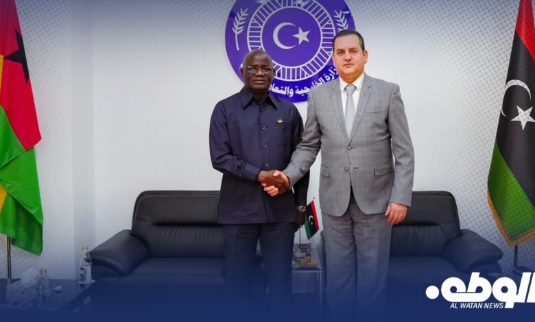 بحث وزير الخارجية والتعاون الدولي بالحكومة الليبية عبدالهادي الحويج، اليوم السبت، مع وزير الدولة والمستشار الخاص لرئيس غينيا بيساو، السفير أمادو سانو، في مقر الوزارة، تعزيز التعاون المشترك بين البلدين في مختلف المجالات ذات الاهتمام المشترك، والقضايا الإقليمية والدولية.
