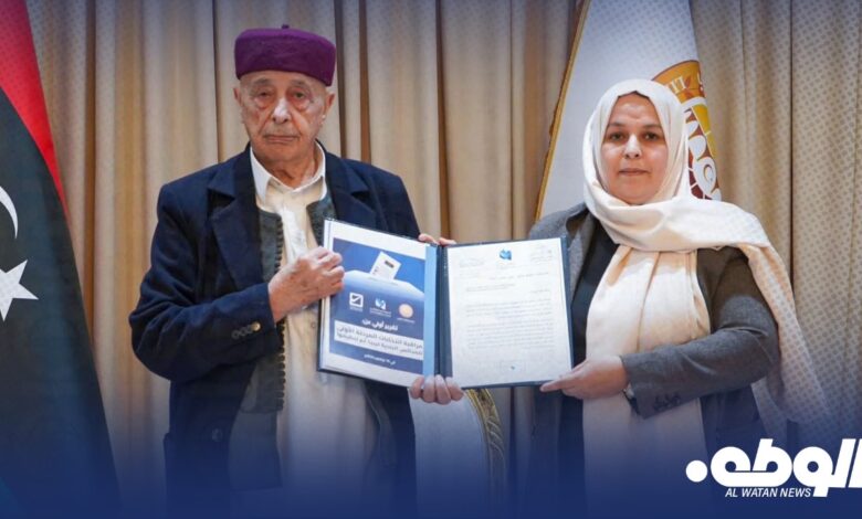 وسلمت التقرير المكلفة بنائبة رئيس المجلس الوطني للحريات وحقوق الإنسان مديرة إدارة المنطقة الشرقية نعيمة العريبي ، وتضمن التقرير استعراضاً شاملاً للإجراءات المتخذة لضمان حسن سير الانتخابات، و مُلخصاً لسير العملية الانتخابية، وأبرز التحديات والملاحظات التي تم رصدها.