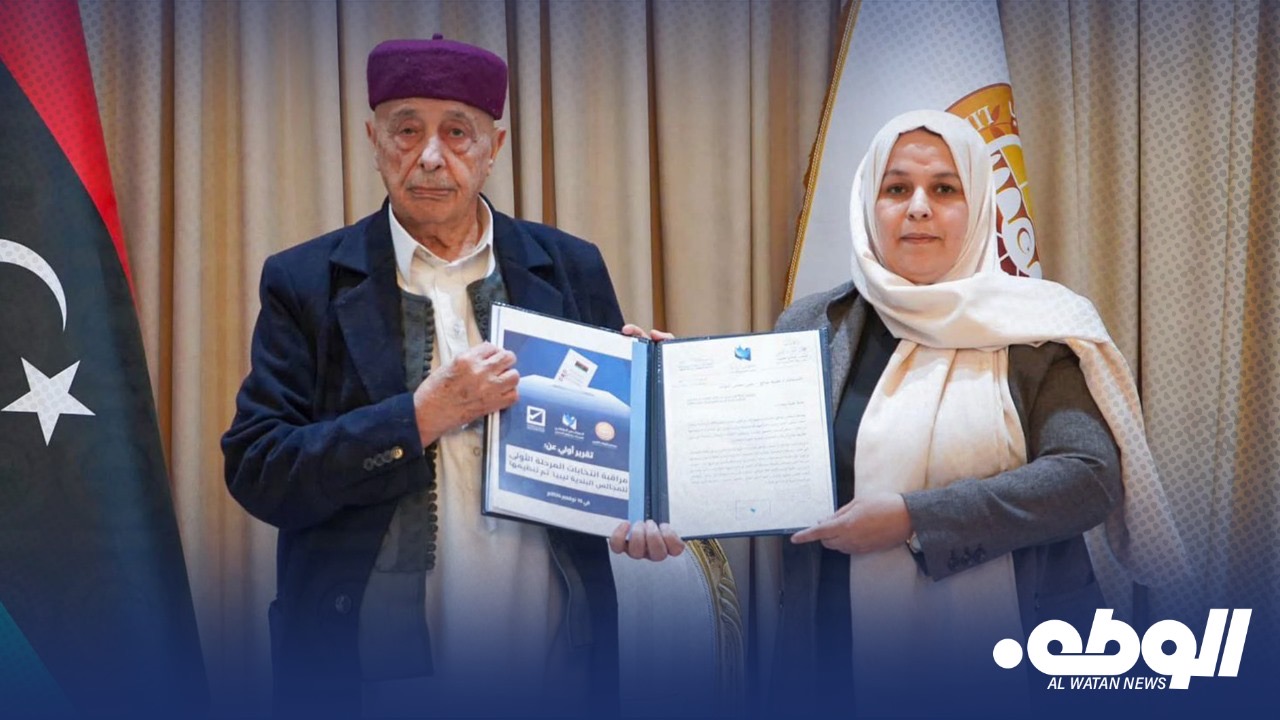تسلم رئيس مجلس النواب المستشار عقيلة صالح بمكتبه في مدينة القبة تقريراً أولياً حول انتخابات المجالس البلدية التي جرت يوم السبت الموافق للسادس عشر من نوفمبر الجاري وذلك في إطار حرص مجلس النواب على متابعة سير العملية الانتخابية وضمان نزاهتها.