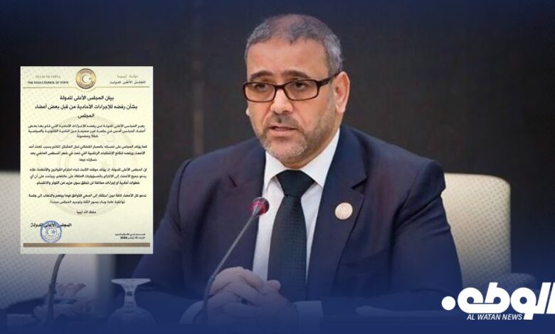 وأكد المشري في بيانه تمسكه بالمسار القضائي لحل الخلافات الناشئة نتيجة رفض أحد الأعضاء لنتائج الانتخابات الرئاسية التي جرت في أغسطس الماضي، وأوضح أن موقفه ثابت تجاه احترام القوانين والأنظمة، داعيًا جميع الأعضاء إلى الالتزام بمسؤولياتهم تجاه المجلس والمصلحة العامة.