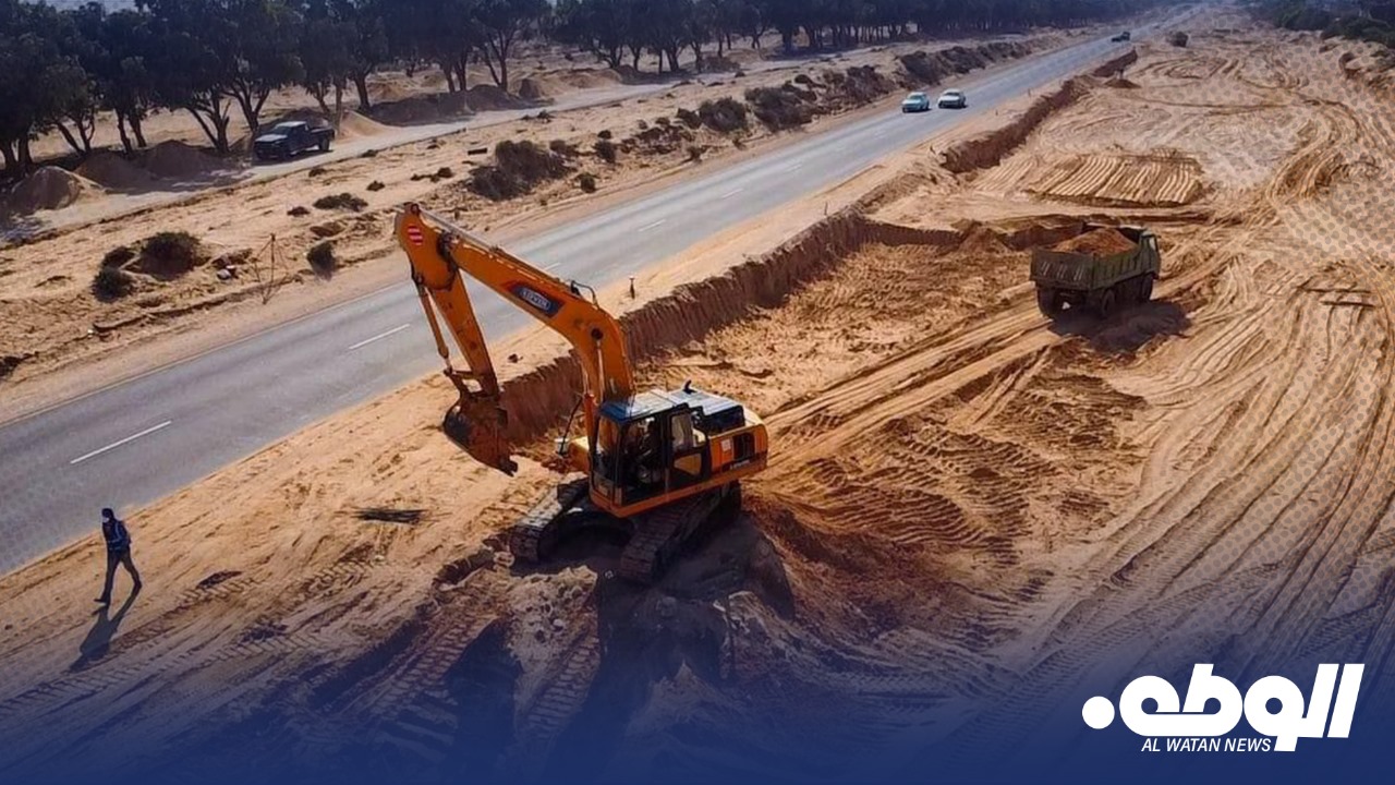تواصل تنفيذ مشروع الازدواج والتوسعة للطريق الساحلي المار بسرت