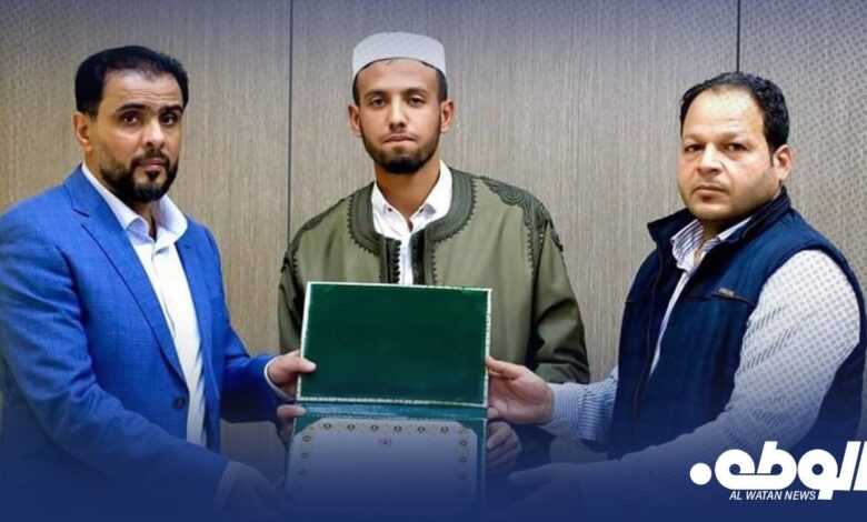 ويأتي هذا التكريم تقديراً لجهود الطالب الذي شرف البلاد ورفع اسم ليبيا عالياً في المحافل الدولية للقرآن الكريم، وتشجيعاً من رئيس الحكومة لحفظة كتاب الله تعالى.
