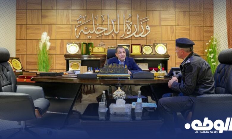 التقى وزير الداخلية، اللواء عصام أبوزريبة اليوم مع مدير فروع الإدارة العامة للشرطة الكهربائية بالمنطقة، الشرقية العميد محمد سعد اللوزي لمناقشة التحديات التي تواجه سير العمل في الفروع
