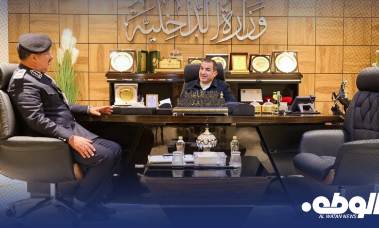 بحث وزير الداخلية بالحكومة الليبية عصام أبوزريبة، مع مدير أمن الجبل الأخضر منصور الفرجاني، الأمور التنظيمية والإدارية المتعلقة بالمديرية.