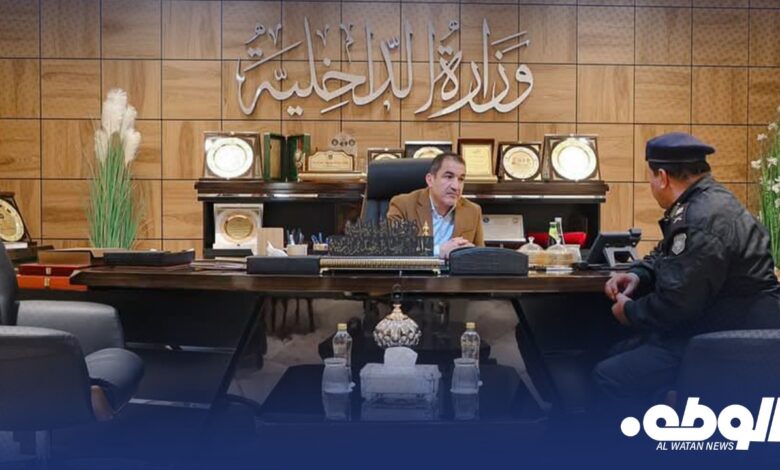 عقد وزير الداخلية، اللواء عصام أبوزريبة، اجتماعًا مع مدير إدارة فروع جهاز الشرطة السياحية وحماية الآثار بالمنطقة الشرقية، اللواء فوزي ونيس الحاسي، لبحث سبل تطوير العمل في الإدارة وتعزيز جهود حماية المواقع الأثرية.