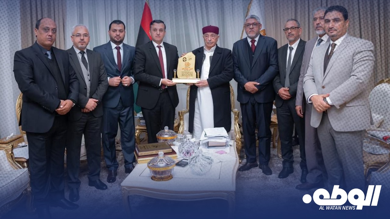 اجتمع رئيس مجلس النواب، المستشار عقيلة صالح، اليوم  مع رئيس هيئة الرقابة الإدارية بالمنطقة الشرقية، خالد نجم، يرافقه مدراء الإدارات بالهيئة، وذلك بمكتبه في مدينة القبة.