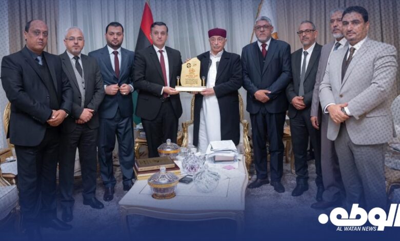 اجتمع رئيس مجلس النواب، المستشار عقيلة صالح، اليوم  مع رئيس هيئة الرقابة الإدارية بالمنطقة الشرقية، خالد نجم، يرافقه مدراء الإدارات بالهيئة، وذلك بمكتبه في مدينة القبة.