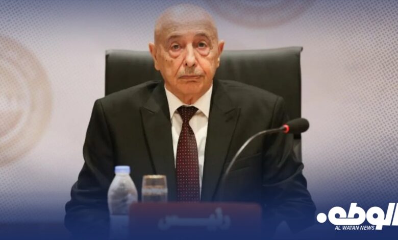 كما أشار رئيس مجلس النواب إلى تشكيل لجنة (66) بالتشاور مع مجلس الدولة، والتي أصدرت قوانين الانتخابات الرئاسية والبرلمانية، معتمدًا بذلك من مجلس الأمن الدولي. وأضاف أن المجلس يعمل على استصدار قانون شامل للمصالحة الوطنية كخطوة أساسية لتوحيد الصف ولم الشمل.