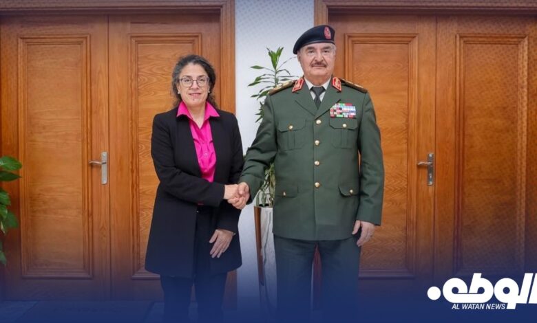 في إطار المشاورات المستمرة، التقى القائد العام للقوات المسلحة المشير خليفة حفتر في مدينة بنغازي مع نائبة الممثل الخاص للأمين العام للأمم المتحدة ستيفاني خوري