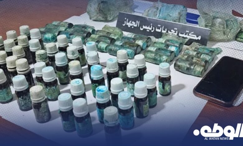 تمكن مكتب تحريات رئيس جهاز مكافحة المخدرات والمؤثرات العقلية من ضبط شخصين متهمين بالاتجار في المواد المخدرة خلال كمين أمني محكم بمدينة بنغازي.