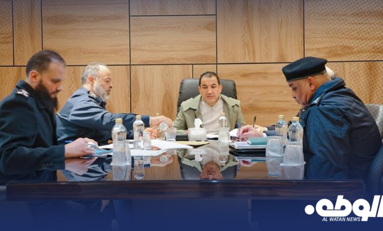 بحث وزير الداخلية بالحكومة الليبية عصام أبوزريبة، اليوم الأحد، مع مدير مكتبه، عز الدين السباني، ومدير إدارة الشؤون الإدارية فتحي المرتضى، ومدير إدارة الشؤون القانونية يوسف الدوكالي، ورئيس قسم الشؤون السرية عبد الحكيم امساعد، بمقر الوزارة، خطة عمل الوزارة للعام 2025.