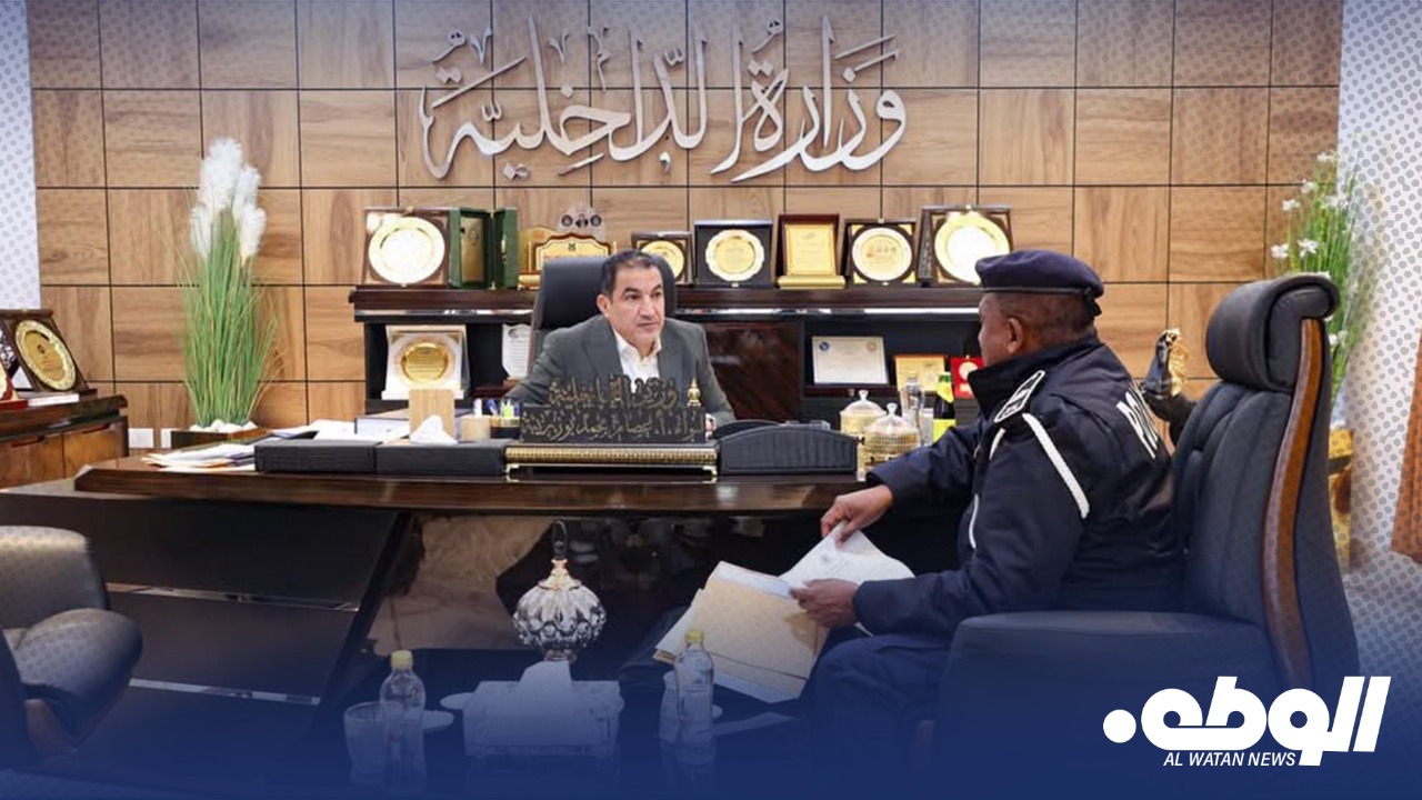 التقى وزير الداخلية الليبية اللواء عصام أبوزريبة، مع رئيس فرع إدارة الإمداد بالمنطقة الجنوبية ورئيس قسم المخازن بمديرية أمن الشاطئ، اللواء عويدات الشريف في مكتبه بديوان الوزارة.