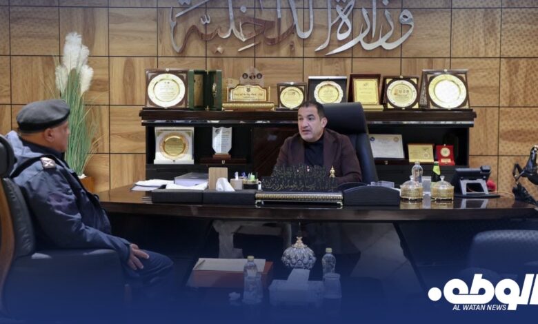 اجتمع وزير الداخلية، اللواء عصام أبوزريبة مع مدير أمن الواحات، اللواء صلاح الدين السنوسي“، لمناقشة سيرالعمل الأمني في المنطقة واحتياجات المديرية لضمان تعزيز الاستقرار.