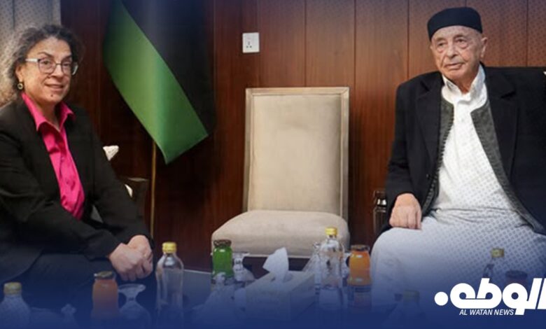 اجتمع رئيس مجلس النواب المستشار عقيلة صالح اليوم بمكتبه في مدينة القبة مع نائبة الممثل الخاص للأمين العام والقائمة بأعمال رئيس بعثة الأمم المتحدة للدعم في ليبيا ستيفاني خوري.
