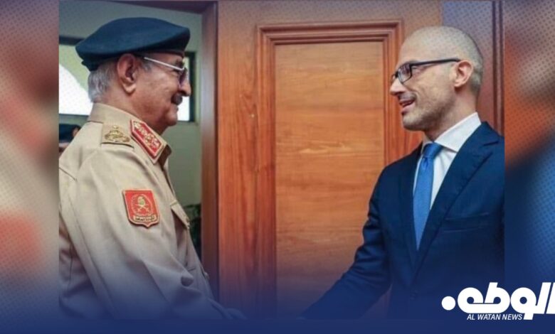 استقبل القائد العام للقوات المسلحة المشير خليفة حفتر، سفير الاتحاد الأوروبي لدى ليبيا، نيكولا أورلاندو، خلال زيارة الأخير إلى مدينة بنغازي.