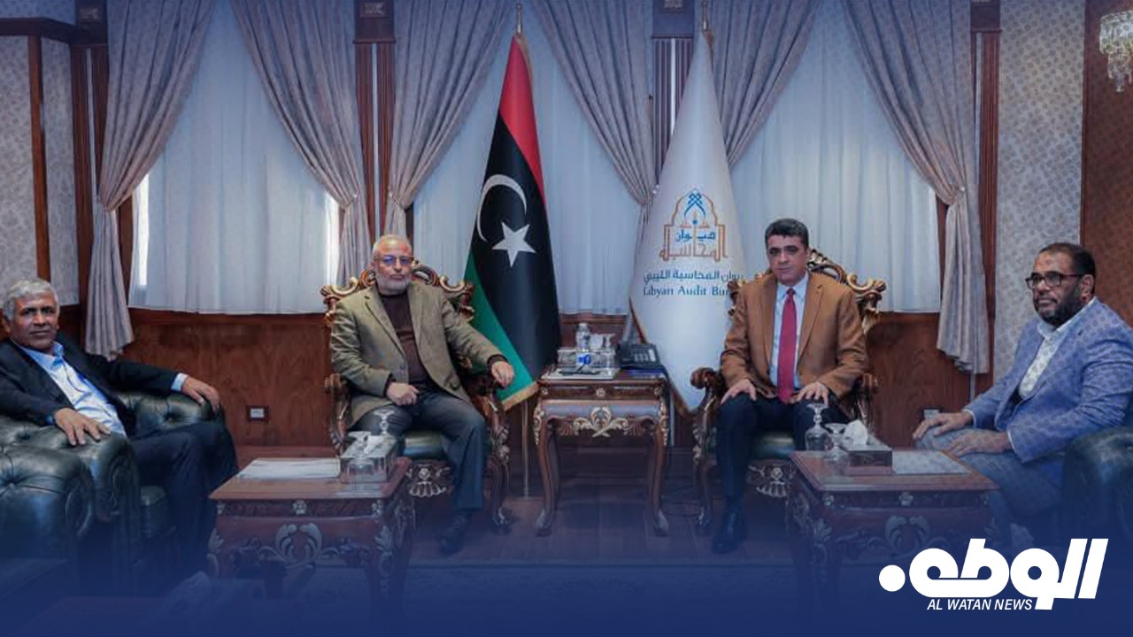 عقدت لجنة متابعة الأجهزة الرقابية بمجلس الدولة، برئاسة محمد بوسنينة، اليوم اجتماعًا مع رئيس ديوان المحاسبة خالد شكشك، وذلك في مقر ديوان المحاسبة بمنطقة الظهرة في طرابلس.