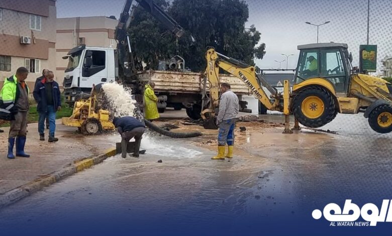 أعمال صيانة طارئة لخط المياه في الطريق الدائري الأول ببنغازي