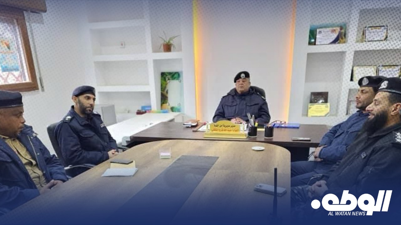 عُقد اجتماع أمني في مكتب مدير الأمن اللواء عبدالله العكشي، بحضور معاون مدير الأمن اللواء إيهاب الكزة، ورئيس مكتب المدير المقدم أنس بوبكر، وذلك لمناقشة آليات دعم جهاز الشرطة الزراعية وتعزيز دوره في حماية الغابات والأراضي الزراعية والمزارع المملوكة للدولة الليبية.