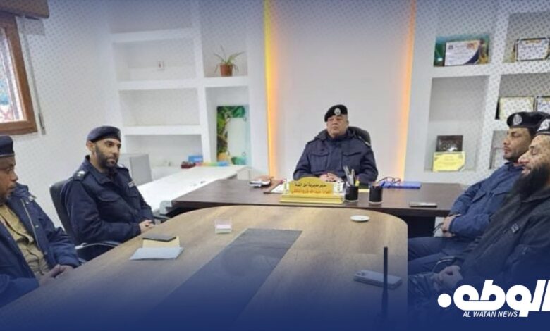 عُقد اجتماع أمني في مكتب مدير الأمن اللواء عبدالله العكشي، بحضور معاون مدير الأمن اللواء إيهاب الكزة، ورئيس مكتب المدير المقدم أنس بوبكر، وذلك لمناقشة آليات دعم جهاز الشرطة الزراعية وتعزيز دوره في حماية الغابات والأراضي الزراعية والمزارع المملوكة للدولة الليبية.