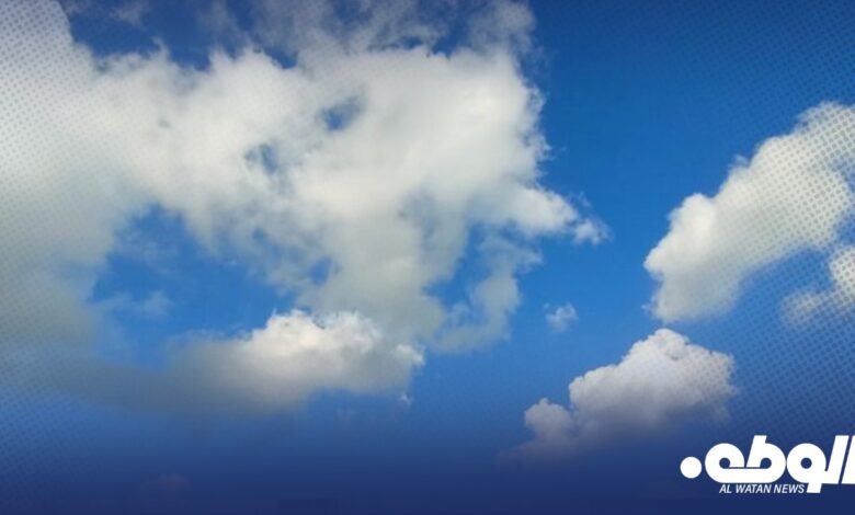 يتوقع المركز الوطني للأرصاد الجوية أن تكون درجات الحرارة معتدلة نسبياً خلال النهار هذا اليوم على أغلب مناطق البلاد حيث تتراوح مابين (17-24)مْ، وتسجل انخفاض تدريجي بداية من يوم الغد الجمعة على مناطق الشمال الغربي مع تكاثر للسحب واحتمال سقوط أمطار متفرقة على بعض المناطق، وتنشط الرياح الجنوبية الشرقية يوم الغد على مناطق الخليج وسهل بنغازي مما قد تسبب في إثارة الأتربة والغبار.