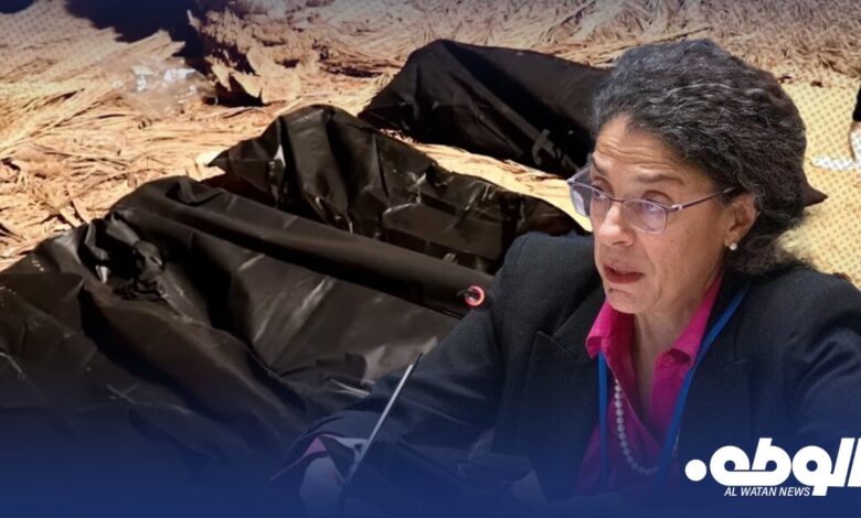 ودعت البعثة الأممية إلى إطلاق سراح المحتجزين غير الشرعيين في ليبيا، مطالبة بإجراء تحقيق كامل في المقبرتين الجماعيتين وتقديم مرتكبي الجرائم إلى العدالة.