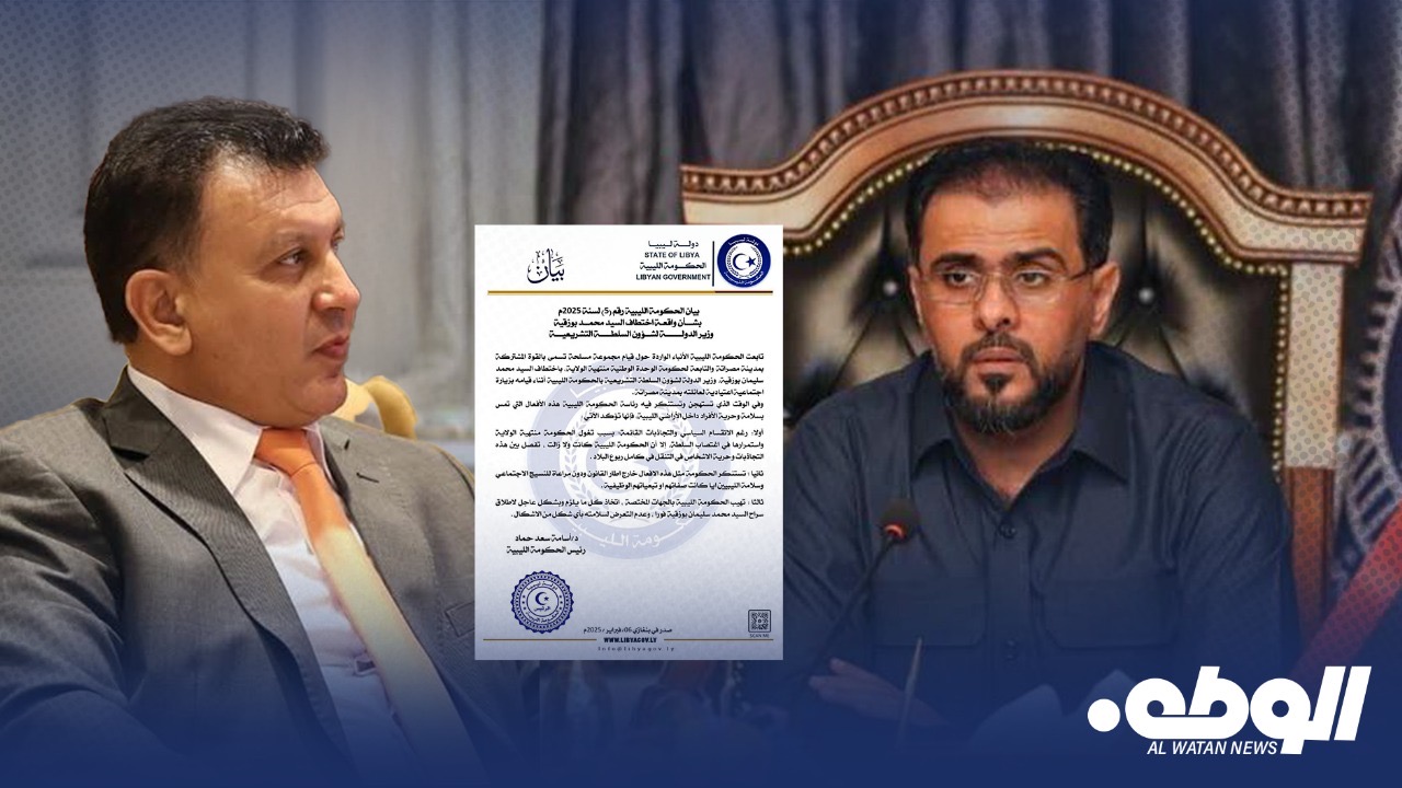 واستنكرت الحكومة مثل هذه الافعال خارج اطار القانون ودون مراعاة للنسيج الاجتماعي وسلامة الليبيين ايا كانت صفاتهم او تبعياتهم الوظيفية .