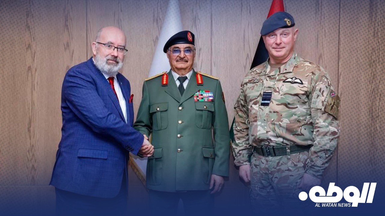 استقبل القائد العام للقوات المسلحة المشير خليفة حفتر، وفدًا رفيع المستوى من المملكة المتحدة، برئاسة نائب رئيس الأركان العامة للدفاع البريطانية، الفريق أول هارفي سميث، وسفير المملكة المتحدة لدى ليبيا، مارتن أندرو، والوفد المرافق له