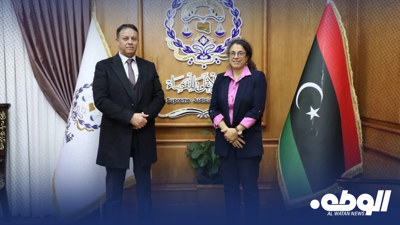 عقد رئيس المجلس الأعلى للقضاء، المستشار مفتاح القوي، اجتماعًا مع نائبة الممثل الخاص للأمين العام للأمم المتحدة للشؤون السياسية، ستيفاني خوري، في مقر المجلس.