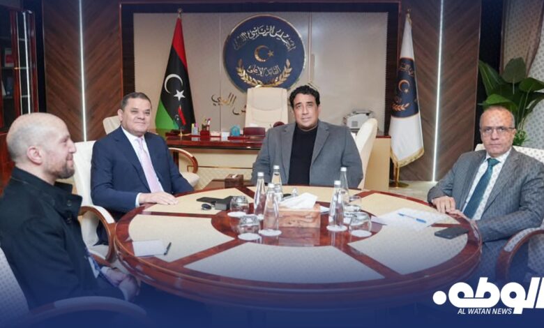 اجتمع رئيس المجلس الرئاسي محمد المنفي والنائب بالمجلس عبدالله اللافي اليوم بطرابلس، رئيس الحكومة منتهية الولاية عبدالحميد الدبيبة، بحضور وزير الدولة للاتصال والشؤون السياسية وليد اللافي