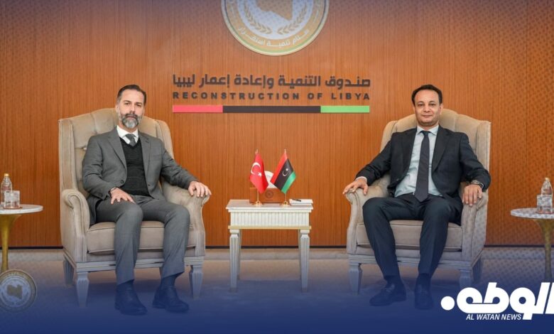 بحث مدير عام صندوق التنمية وإعادة إعمار ليبيا بالقاسم حفتر، مع السفير التركي لدى ليبيا غوفين بيجيتش، عدد من القضايا المتعلقة بمشاريع الإعمار والتطوير في البلاد.