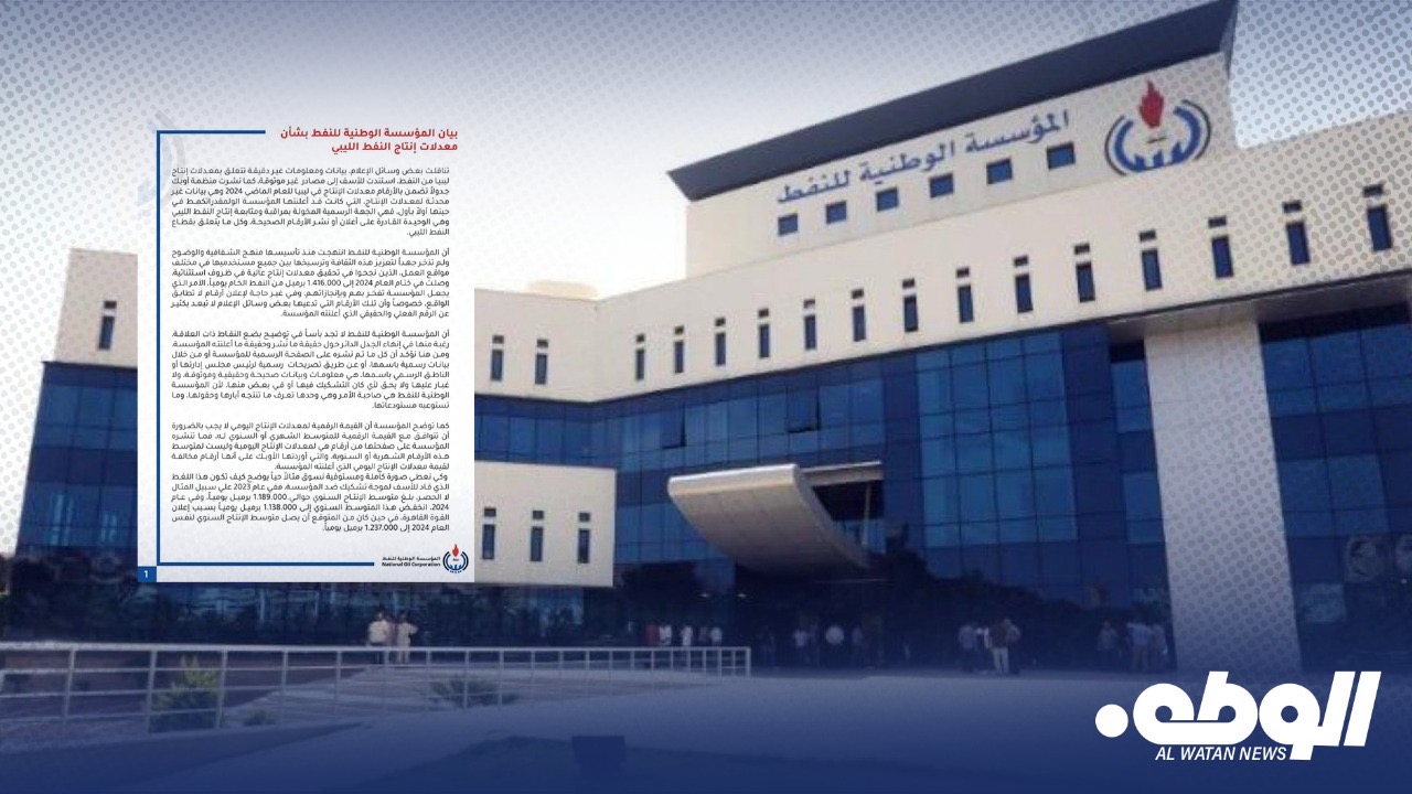 قالت المؤسسة الوطنية للنفط في بيان لها، إن بعض وسائل الإعلام، تناقلت بيانات ومعلومات غير دقيقة تتعلق بمعدلات إنتاج ليبيا من النفط، استندت إلى مصادر غير موثوقة.