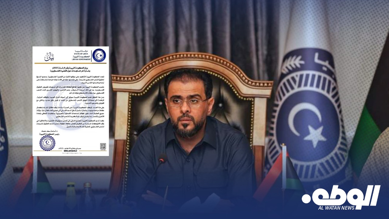 أصدر رئيس الحكومة الليبية أسامة حماد، بيانًا أكد فيه دعم حكومته لحق الفلسطينيين في إقامة دولتهم المستقلة، مجددًا رفضه للتهجير القسري الذي يتعرض له الشعب الفلسطيني.