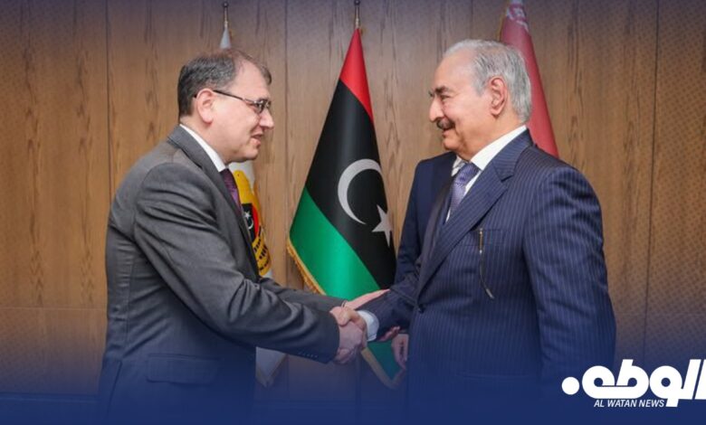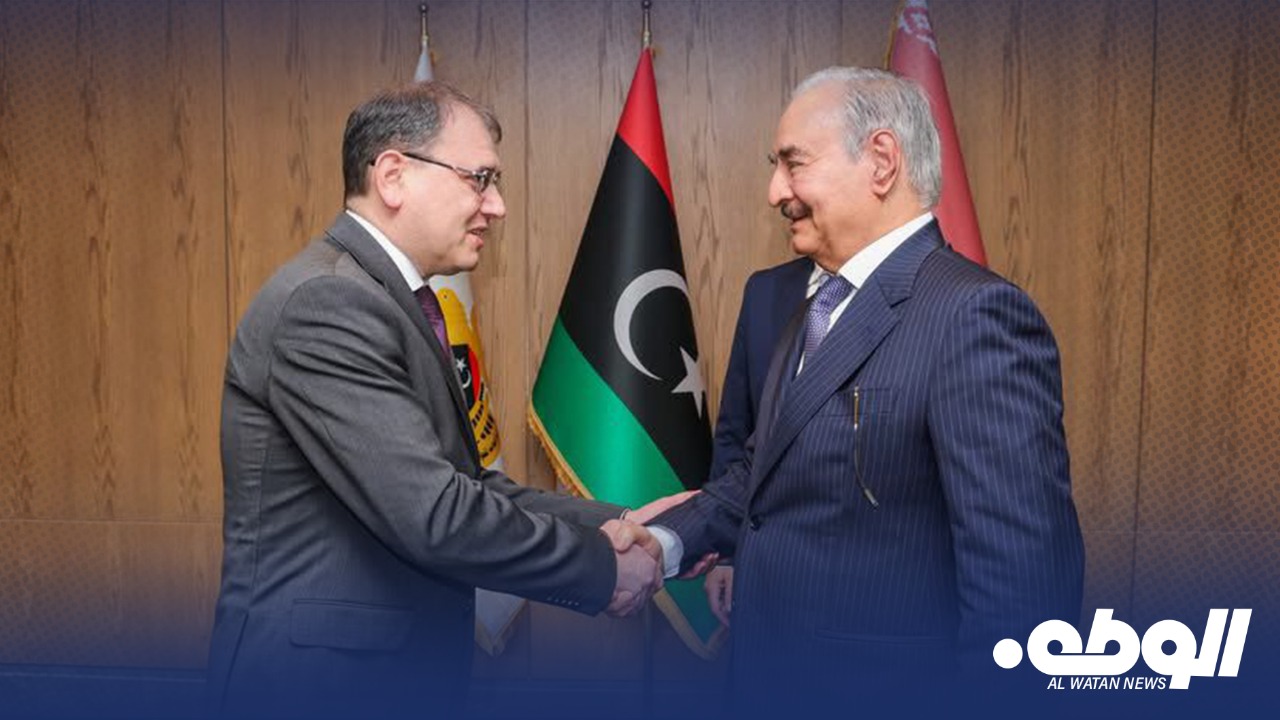 التقى القائد العام للقوات المسلحة، المشير “خليفة حفتر”، في مكتبه بمقر القيادة العامة، مع رئيس وزراء جمهورية بيلاروسيا المكلف، “فيكتور كارانكيفيتش”، والوفد المرافق له.