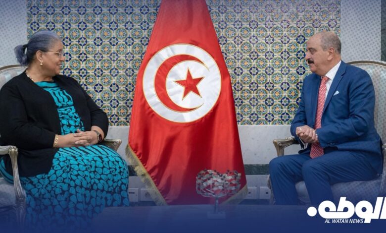 وأعربت تيته عن تقديرها للدعم المتواصل الذي تقدمه تونس للبعثة مقدمة تقييمًا للوضع الليبي، وتحديثًا حول عمل اللجنة الاستشارية، بالإضافة إلى إطلاع الوزير على جولاتها في ليبيا وزياراتها الأخيرة إلى مصر والجزائر وتركيا.