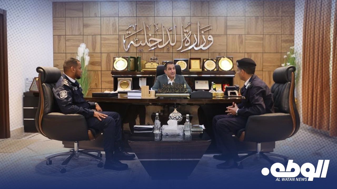 ناقش وزير الداخلية بالحكومة الليبية عصام أبوزريبة، اليوم الاثنين، مع مدير أمن درنة أحمد المسماري، ومعاونه جابر أحمد، عدد من القضايا المتعلقة بمديرية الأمن، وأوضاع الشهداء التابعين للمديرية.