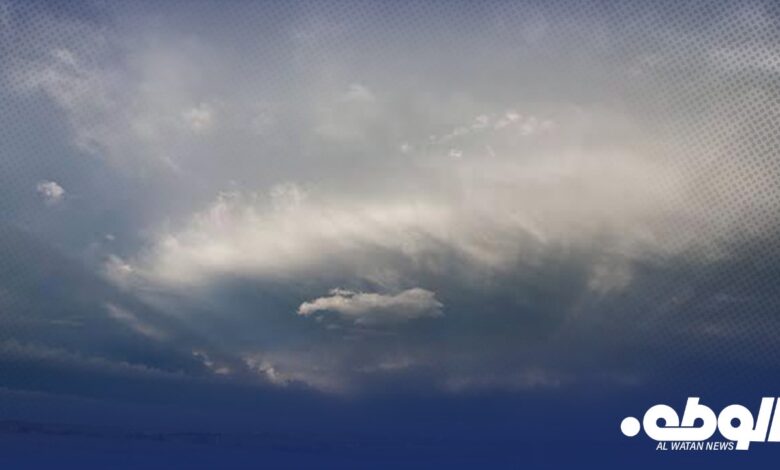 وقال إن السحب ستتكاثر من حين لآخر على بعض مناطق الشمال يصحبها أحياناً سقوط زخات خفيفة من المطر خاصةً على الجبل الأخضر.