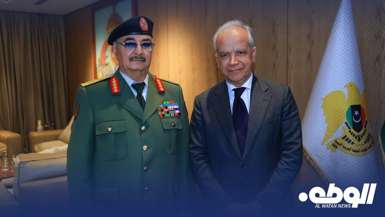 استقبل القائد العام للقوات المسلحة خليفة حفتر، في مكتبه بمقر القيادة العامة وفدًا من الحكومة الإيطالية، ضم وزير الداخلية الإيطالي ماتيو بيانتيدوزي، ونائب وزير الخارجية إدموندو تشيريلي، والسفير الإيطالي لدى ليبيا جيانلوكا ألبيريني، والوفد المرافق.
