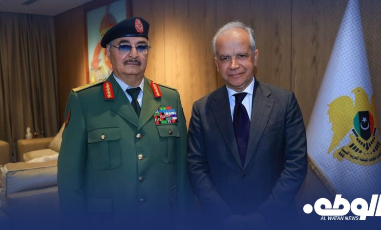 استقبل القائد العام للقوات المسلحة خليفة حفتر، في مكتبه بمقر القيادة العامة وفدًا من الحكومة الإيطالية، ضم وزير الداخلية الإيطالي ماتيو بيانتيدوزي، ونائب وزير الخارجية إدموندو تشيريلي، والسفير الإيطالي لدى ليبيا جيانلوكا ألبيريني، والوفد المرافق.