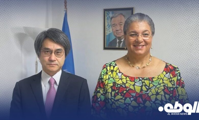 عقدت الممثلة الخاصة للأمين العام للأمم المتحدة في ليبيا، هانا تيته، اجتماعًا مع سفير اليابان لدى ليبيا، إيزورو شيمّورا، لمناقشة سير أعمال اللجنة الاستشارية، وتبادل وجهات النظر حول الأوضاع السياسية والاقتصادية في ليبيا.