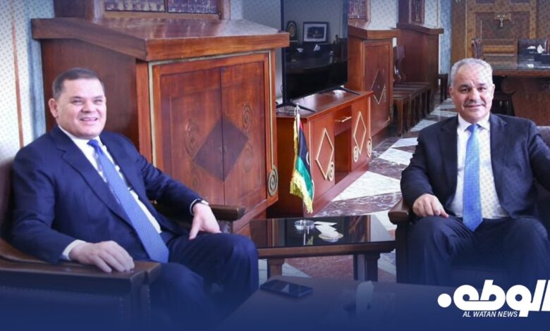 بحث محافظ مصرف ليبيا المركزي ناجي عيسى، مع رئيس الحكومة المنتهية عبد الحميد الدبيبة، تداعيات الإنفاق العام على الوضع الاقتصادي والمالي، وآثاره على قوة الدينار الليبي.