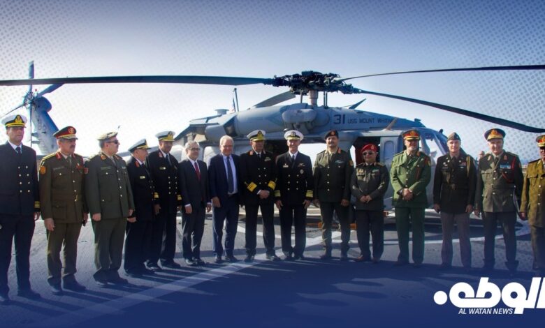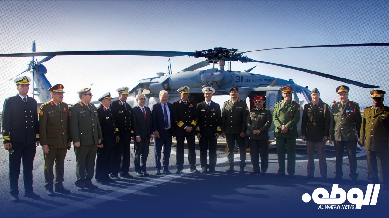وبعد وصول الوفد الأمريكي على متن السفينة الأمريكية “يو إس إس ماونت ويتني”، عقد لقاء مع الأمين العام للقيادة العامة للقوات المسلحة، الفريق أول خيري التميمي، ورئيس أركان الوحدات الأمنية، الفريق ركن خالد خليفة، ورئيس أركان القوات البحرية، الفريق شعيب الصابر، بالإضافة إلى عدد من كبار المسؤولين العسكريين في البلاد.