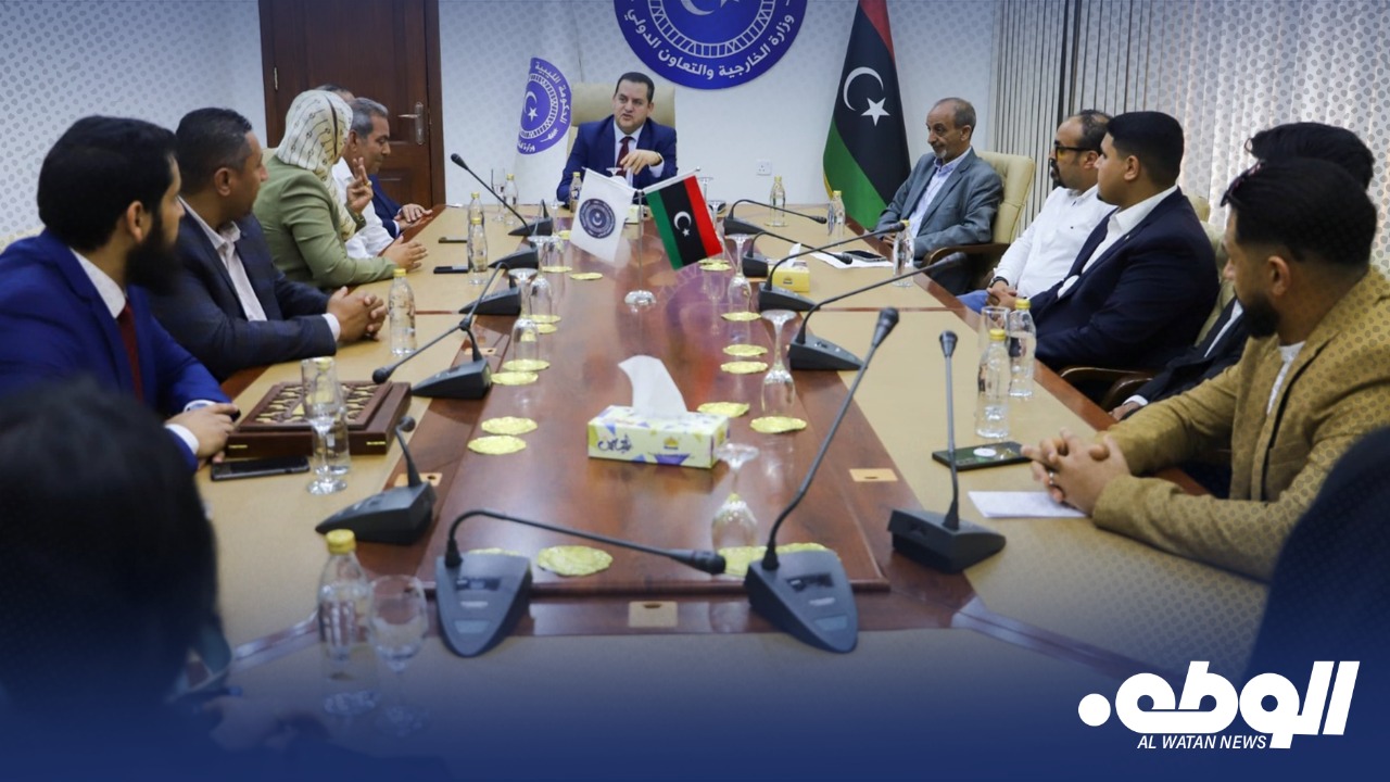 التقى وزير الخارجية والتعاون الدولي بالحكومة الليبية عبدالهادي الحويج، بمقر الوزارة في مدينة بنغازي، وفدًا من أساتذة وطلبة قسم العلوم السياسية بكلية الاقتصاد بجامعة بنغازي الأهلية.