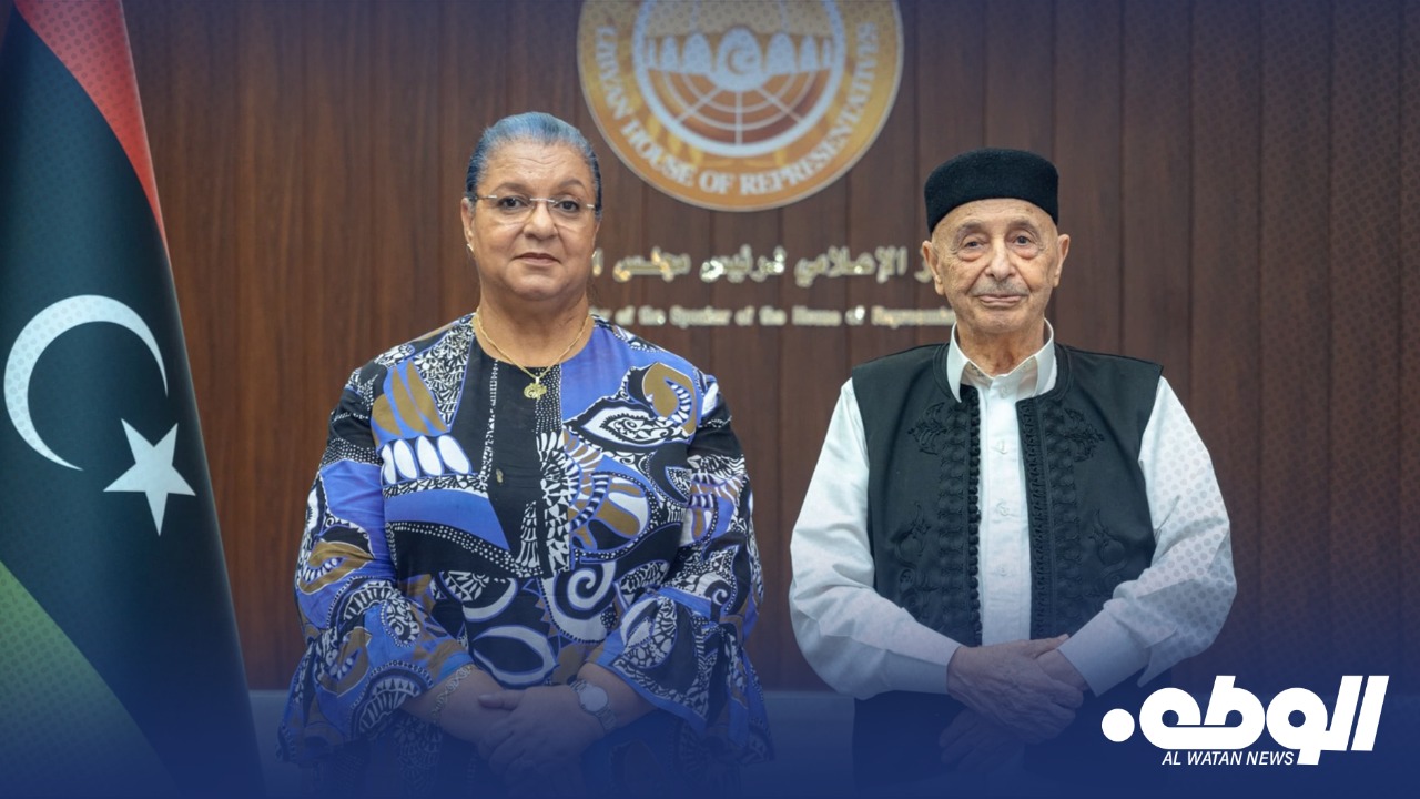 التقى رئيس مجلس النواب المستشار عقيلة صالح، اليوم الممثلة الخاصة للأمين العام، رئيسة بعثة الأمم المتحدة للدعم في ليبيا، هانا تيته، ونائبتها ستيفاني خوري.