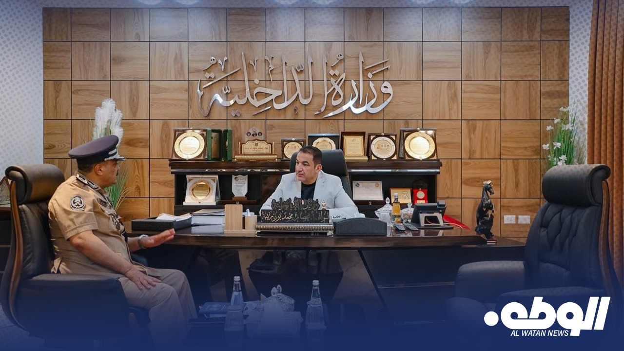 اجتمع معالي وزير الداخلية اللواء عصام أبوزريبة، مع مدير إدارة التخطيط الأمني، اللواء ونيس الشكري، في مكتبه بديوان الوزارة ببنغازي.