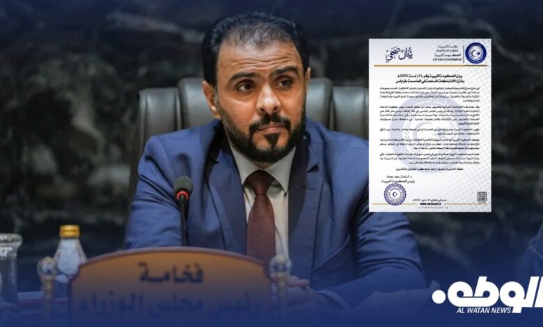 وشدد على أن الحكومة الليبية تحمل المسؤولية القانونية الكاملة لكل من شارك أو حرض أو مول أو تواطئ في إشعال الحرب في طرابلس.