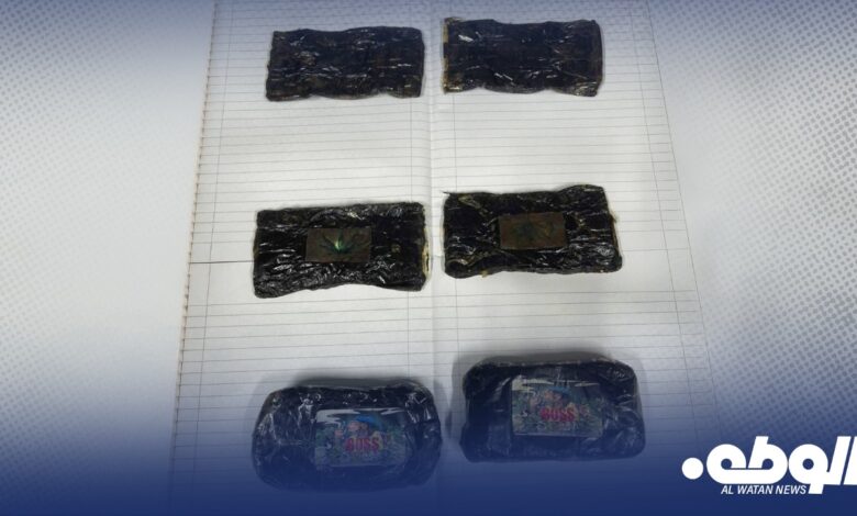 ضبط جهاز البحث الجنائي الليبي فرع أمساعد عدد من تجار المخدرات ومواد تقدر بثلاث كيلو جرام و65 قطعة مغلفة في البردي.