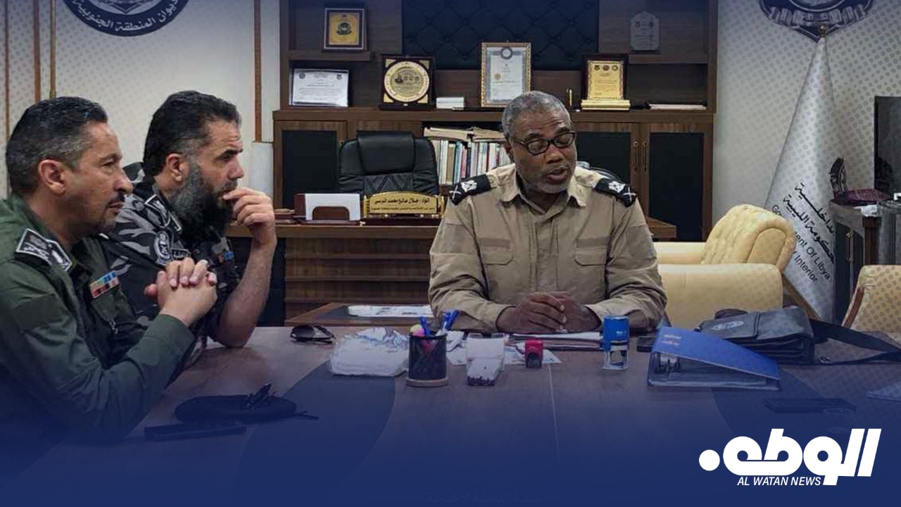 عقد رئيس ديوان وزارة الداخلية بالمنطقة الجنوبية، اللواء عبدالسلام الشريف، اجتماعًا موسعًا ضم عددًا من المسؤولين الأمنيين والإداريين، من بينهم رئيس لجنة إعادة تنظيم الجنوب، ومدير إدارة العمليات الأمنية اللواء جمال العمامي، ورئيس جهاز الشرطة الزراعية، إضافة إلى مدير إدارة مشاريع النخيل والزيتون.