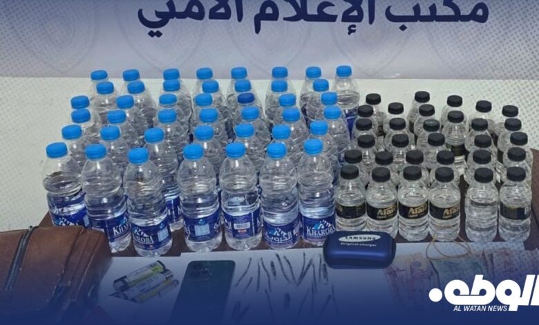 وأوضح الجهاز أن المتهم، المدعو “ع. ف. ب”، ضُبط وبحوزته 63 قنينة من الخمر محلي الصنع، إلى جانب 20 قطعة من مادة يُشتبه بأنها مخدرة، كان ينقلها داخل سيارة من نوع شيفروليه يُعتقد أنه استعملها في عمليات الترويج.
