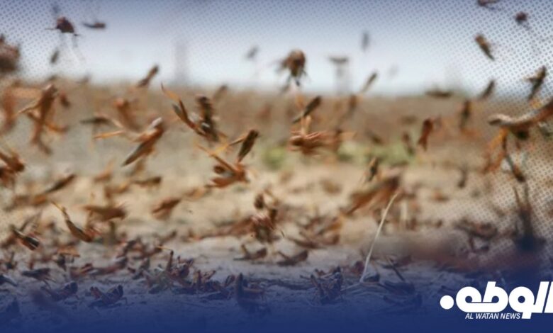 وأوضح البريكي أن كميات كبيرة من الجراد في مشروع إيراون بأوباري تمكنت من الانتقال شمالاً لتصل إلى منطقة وادي الشاطئ، مضيفاً أن اللجنة تلقت بلاغات بوجود أسراب بكميات كبيرة في العديد من المواقع بمنطقة الحمادة الحمراء.
