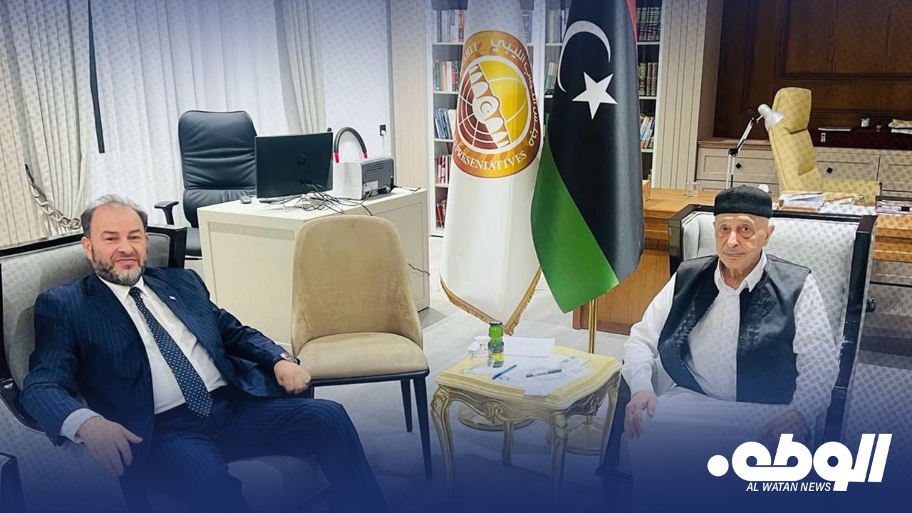 التقى رئيس مجلس النواب المستشار “عقيلة صالح”اليوم الأربعاء، النائب الثاني لرئيس المجلس الأعلى للدولة” عمر العبيدي”وذلك بمقر مكتبه في مدينة القبة.